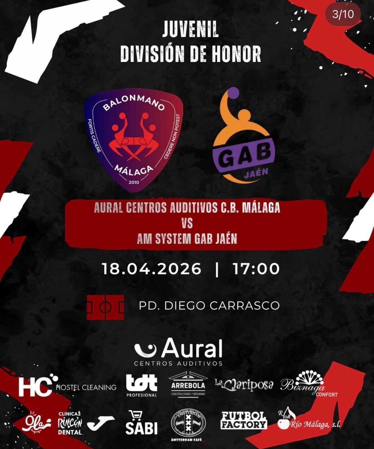 Este sábado 18 de abril a las 19:00, el balonmano malagueño vive una cita de alto voltaje. El Aural Centros Auditivos Bm. Málaga disputa su último partido en casade esta temporada en Primera Nacional, y lo hace ante el rival más difícil posible: el Club Balonmano Cantera Sur.